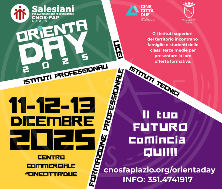 🎓✨ OrientaDay 2025 sta arrivando a CinecittàDue!Tre giorni per aiutare gli studenti a scegliere il proprio futuro. 💡 Dall’11 al 13 dicembre 2025, il Centro