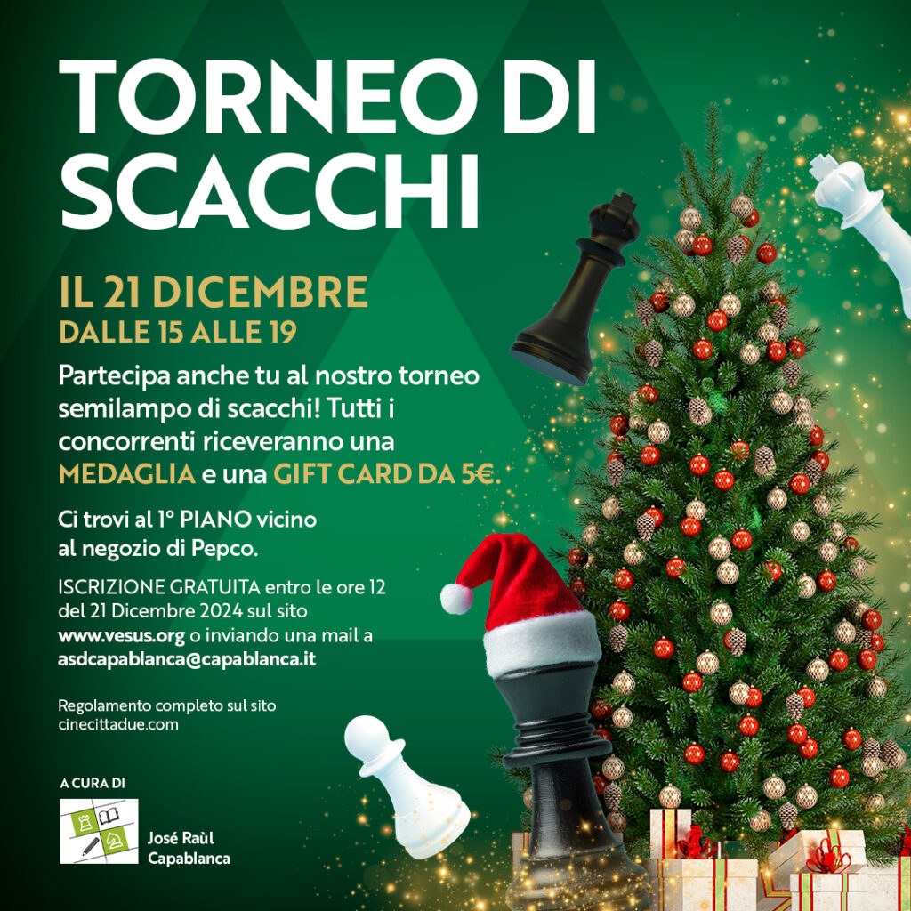📍Sabato 21dicembre dalle 15:00 alle 19:00 vi aspettiamo per partecipare al nostro torneo di scacchi, non è importante che tu sia un professionista o stia appena imparando a fare le prime mosse l’importante è divertirsi e aguzzare l’ingegno